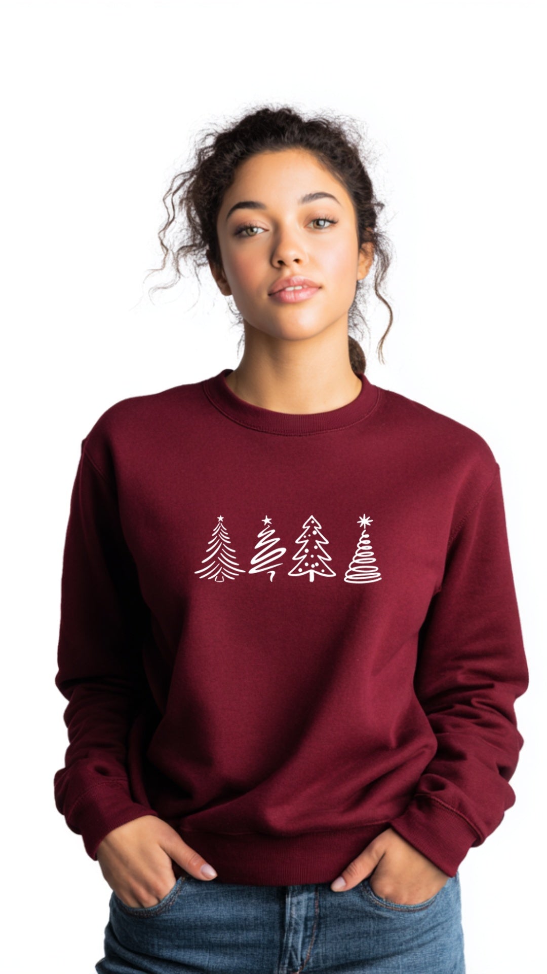 Add a touch of holiday charm with our Four Trees Merry Christmas crewneck sweater, perfect for celebrating the season in cozy style. This sweater features a simple yet festive design, ideal for everything from holiday gatherings to relaxed evenings at home. Embrace the joy of Christmas in a piece that brings both warmth and holiday cheer to your wardrobe.
