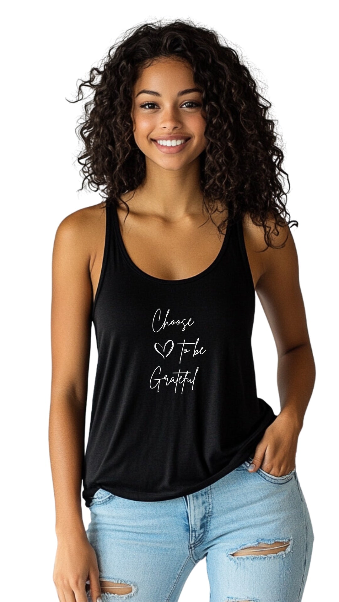Featuring the powerful phrase 'Choose to be Grateful', this tank encourages positivity and mindfulness in every step you take. With a flattering fit and a soft, comfortable fabric blend, this festive piece is perfect for casual outings, gatherings, or even your daily moments of reflection. Pair it with your favorite jeans or leggings for a look that’s as comfortable as it is empowering.