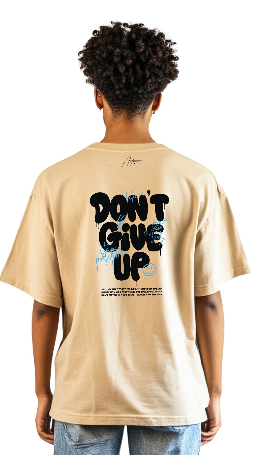 Embrace both style and resilience with our oversized streetwear tee, featuring the empowering statement "Don't Give Up." Crafted for ultimate comfort and durability, this t-shirt is designed for those who appreciate a relaxed fit without compromising on bold expression. Whether you're out on the streets or lounging in comfort, this piece speaks volumes.